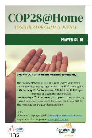 The Ecology network invites you to two online prayers to accompany your prayers during COP 28 on Wednesday, 29th of November, 7.30-8.30 pm CET (Prayer, information about the prayer guide), Wednesday 13th of December, 7.30 pm CET (Prayer, sharing about your experiences with the prayer guide and COP 28)